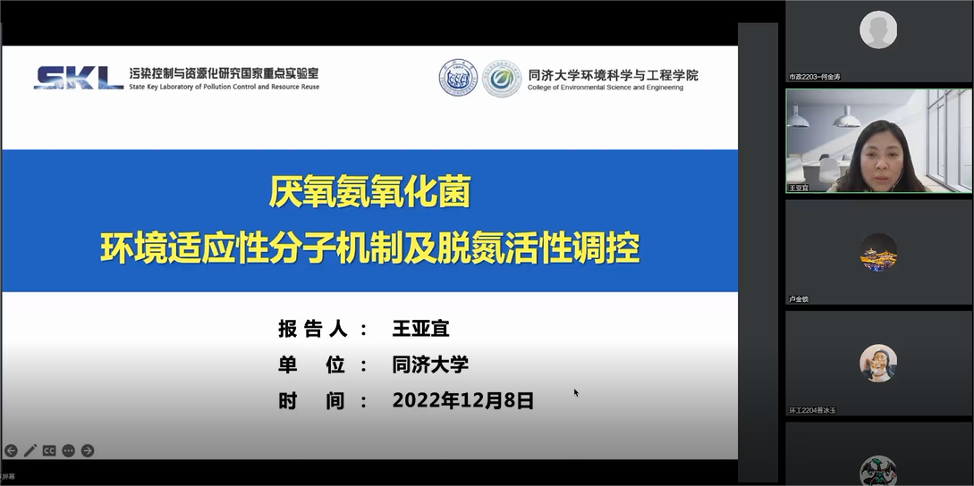 2022年12月9日下午,雷竞技RAYBET第13期环境大讲堂活动顺利举办。本期讲座特邀国家杰出青年基金获得者、同济大学环境科学与工程学院王亚宜教授于线上分享题为《厌氧氨氧化菌环境适应性分子机制及脱氮活性调控》的学术报告。讲座由雷竞技RAYBET院长卢金锁教授主持,学院师生近300人与会交流。会议伊始,卢金锁对王亚宜教授的到来表示欢迎与感谢,并简要介绍了其研究方向、学术成果等相关情况。图1 卢金锁院长主持讲座王亚宜教授首先对厌...