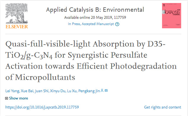 我校金鹏康教授团队在环境类国际顶级期刊 《Applied Catalysis B:Environmental》发表最新研究成果