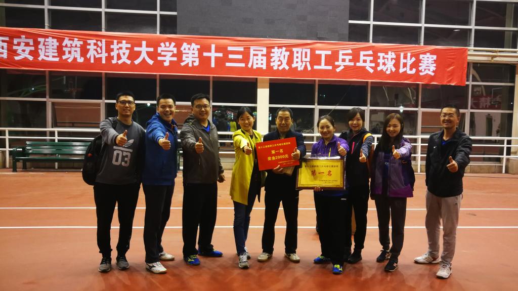 10月13日至14日,我校第十三届教工乒乓球比赛在雁塔校区文体馆举行,雷竞技RAYBET教工代表队9名队员众志成城,奋勇拼搏,经过一天的激烈角逐,在16支参赛队伍中脱颖而出,取得团体比赛冠军,为学院争得了荣誉。