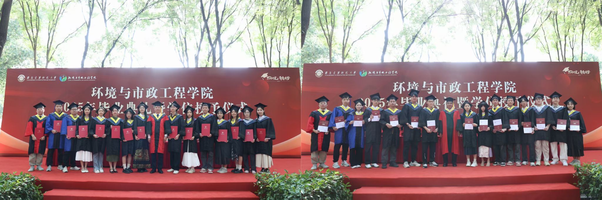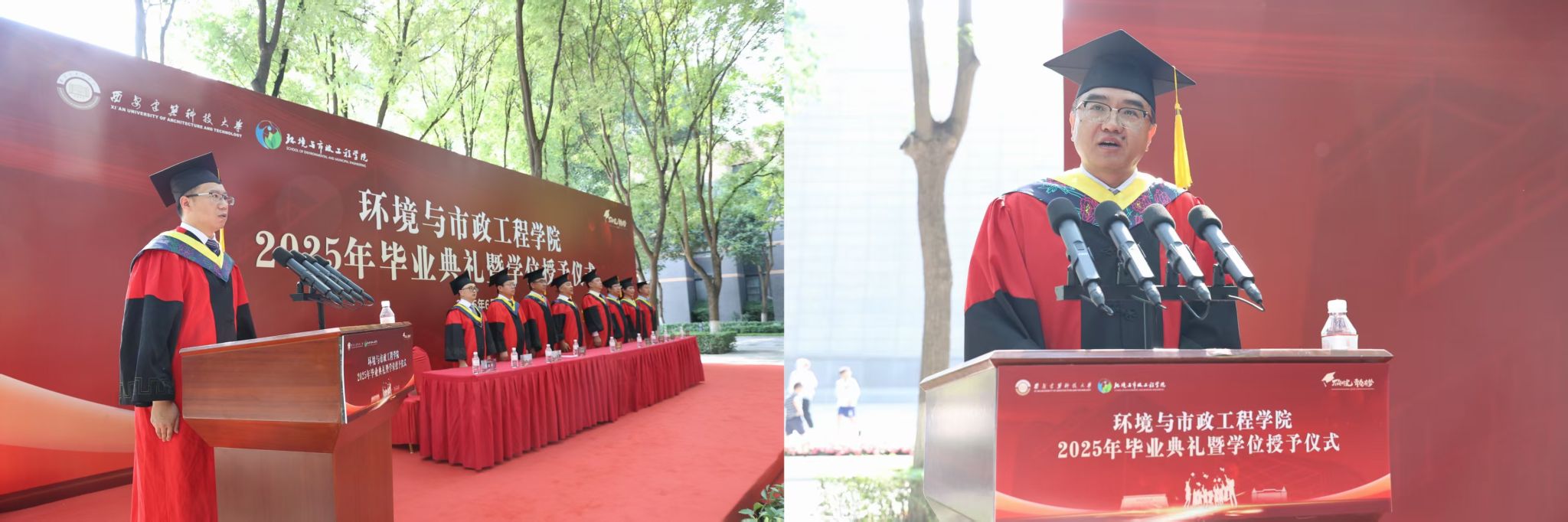 毕业研究生代表环境科学与工程专业2021级博士研究生马奔同学,毕业本科生代表给排水科学与工程专业2103班杨博澜同学代表毕业生发言。他们深情回顾了在建大从青涩到坚定的蜕变历程,分享了在挑战与机遇中收获的“三重温度”与成长感悟,感恩母校与师长将“象牙塔”建成了能望见山河方向的“瞭望台”,并表示将带着“爱我环工,永攀高峰”的信念与“守护初心”的担当,在各自的领域里续写建大环境人的精彩篇章。
