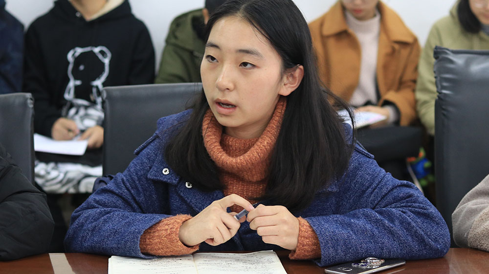 会议首先由2017级、2018级各班学习委员汇报本班近期学习状况,他们主要从上课情况、早晚自习出勤率、四六级通过率和对任课老师的评价等方面对本班的开学以来的学习风气和学习状态进行汇报,并将各班在选课、答疑和考试安排中的疑问集中向院领导反应。