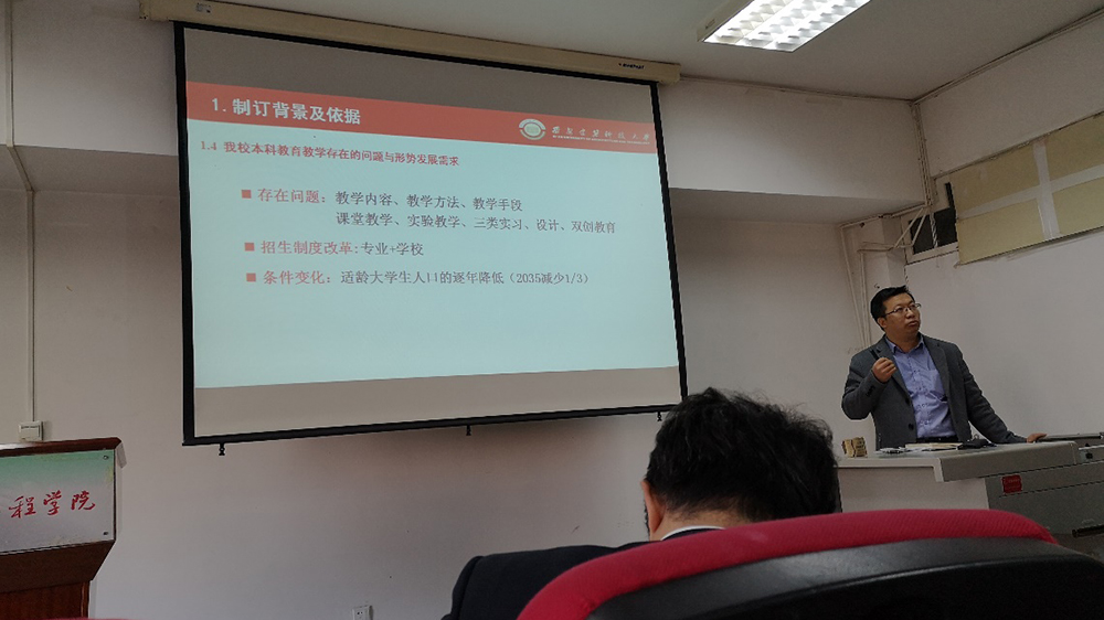 此次会议主要依据党中央对新时代高等教育提出的新要求、教育部推进专业、本科建设的新要求、陕西省推进专业、本科建设的新举措以及我校本科教育教学存在的问题与形势发展需求等从推进思路及内容以及立项工作安排两个方面进行了详细介绍和要点解读,并提出了推进工作中的各项要求。不仅响应学校加强本科教育和专业建设的要求,也对我院深入进行教学科研同步发展,加强学科专业联动有重要意义。刘立忠副院长就推进工作的重点内容和要求进行了解读,包括项目设置的层次分类、建设内容的必备条件和相关要求、项目建设要求及考核要求、项目管理要求、经费设置等多个方面。为高质量开展一流专业项目建设,要求各类教学建设项目要严格按照项目时间节点及材料要求保质保量完成。
