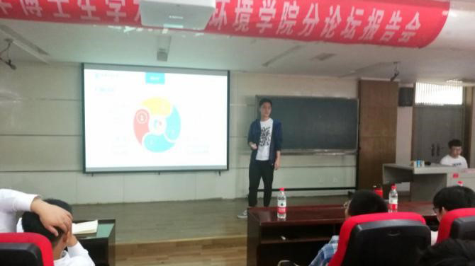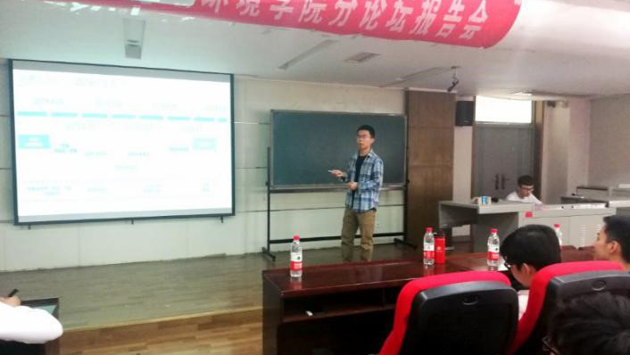 首先进行分享的是来自西安交通大学的栗宪业同学,他向参会同学详细介绍了“E-ball”----一种高能效波浪能全向收集纳米发电装置及其在海洋监测浮标系统中的应用项目。栗同学分别从团队组建,材料书写,答辩展示等方面进行了介绍。