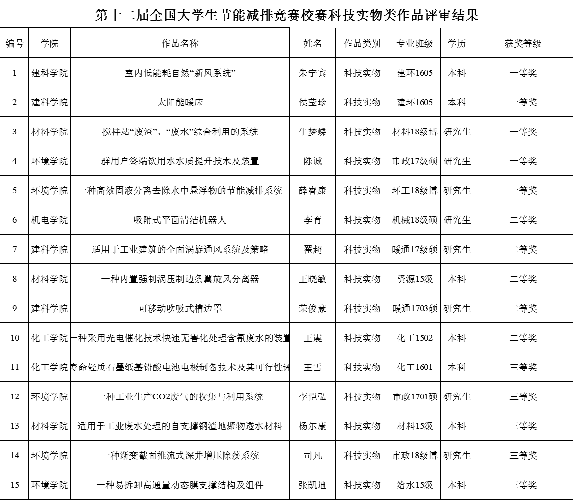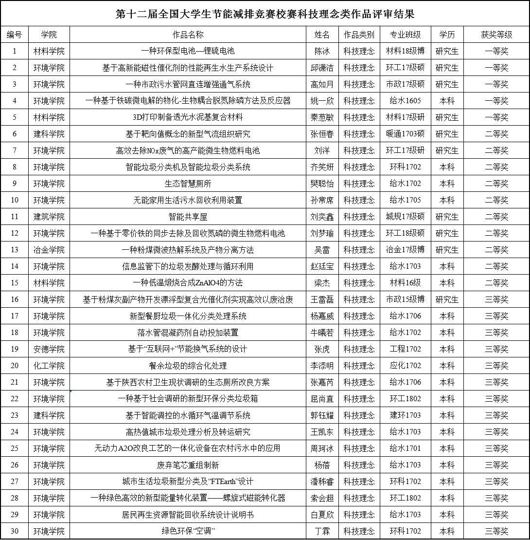 答辩历时4个多小时,评委综合现场答辩陈述情况、申报书质量等评出了此次校赛一、二、三等奖的获奖团队,详见附件。经组委会研究,报学校相关部门领导,决定推荐获得校赛一等奖的15项作品参加第十二届全国节能减排社会实践与科技竞赛国赛。此次竞赛充分展现了我校在节能减排领域的新思路、新视野、新技术和新发展,同时充分展示了我校学子勇于创新、学以致用的精神,也增加了各个学之间的学术交流,激起了校内的双创热潮。最后,预祝我校在第十二届全国大学生节能减排社会实践与科技竞赛中取得优异成绩。