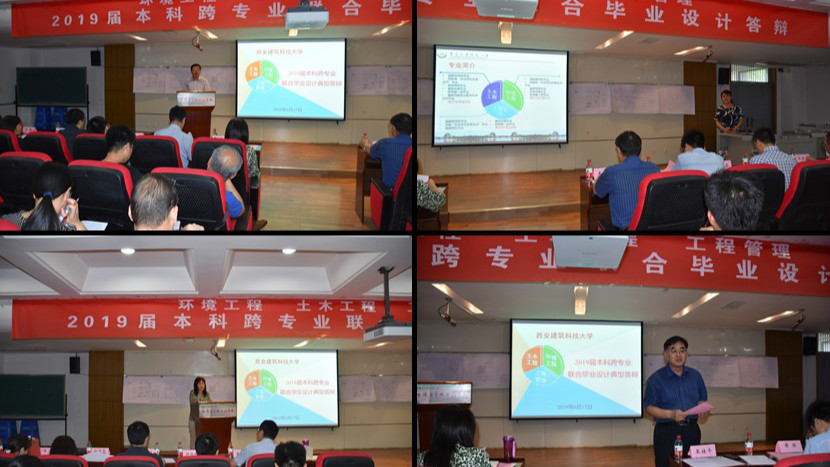 “跨专业联合毕业设计”是由我校环境工程专业率先提出,联合土木工程和工程管理专业进行的毕业设计改革新举措。经过从上学期期末的毕业设计选题、遴选相关专业教师、组建联合毕业设计小组,到本学期的联合毕业实习、每两周集中答疑、沟通交流、中期汇报、完成设计成果等半年的工作,于2019年6月17日上午8:30在环工楼716会议室举行了雷电竞ray官网首届本科“跨专业联合毕业设计”典型答辩。