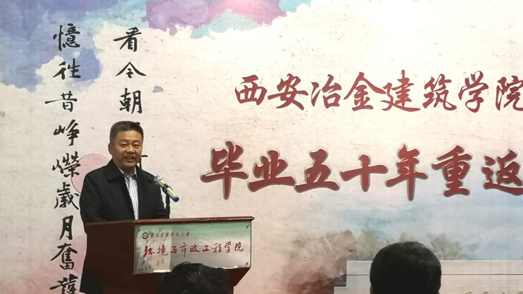 随后,副校长黄廷林代表学校向校友赠送纪念品,校友们给学院赠送了“奔牛”木雕,祝愿学校和学院发展蒸蒸日上,再创辉煌。仪式最后,校友代表给排水64级王志盈老师、供热64级戴明志学长先后发言,感谢母校的培养和关怀,赞叹学校取得的飞速发展,祝福母校明天更美好。