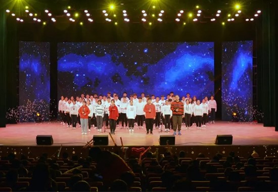 晚会在激动人心的开场视频中正式开始,通过视频回顾了学院一年来取得的显著成绩。倒数声起,花之舞至,眸光流盼,顾盼生姿。那是生命的交织,灵魂的碰撞。花季少女在诉说着对未来的渴望,对梦想的追逐,用生命发出耀眼绚烂的青春华光。