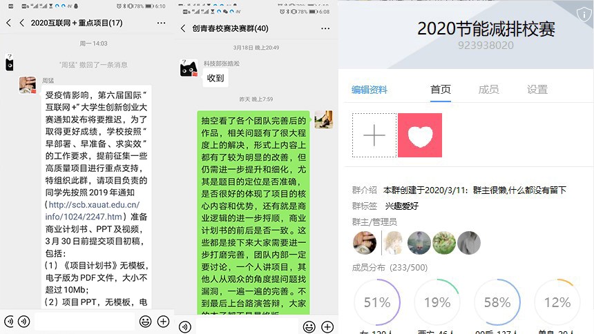 学校开课以来,雷竞技RAYBET在做好疫情防控同时,在校双创办和团委的指导和协助下,努力做细做实双创竞赛备赛和组织工作,积极探索疫情防控期间双创竞赛线上精准服务方式,综合运用线上视频课程、竞赛团队线上交流、导师连线辅导等线上方式做好今年“互联网+”大学生创新创业大赛、挑战杯全国大学生创业计划竞赛、节能减排社会实践与科技竞赛、环境友好科技竞赛等竞赛的项目挖掘、作品打磨和赛事组织工作。力争让学生“停课不停创,备赛不停歇”。