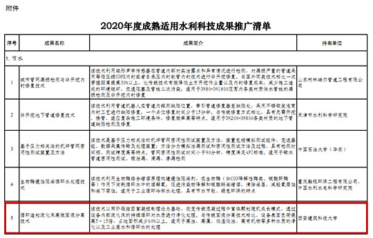 日前,水利部发布了2020年度成熟适用水利科技成果推广清单,我校黄廷林教授团队成果“循环造粒流化床高效固液分离技术”入选,成为本年度全国19项节水领域成熟适用水利科技成果推广清单成果之一。