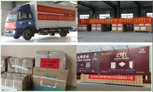 除病区空气净化装备外,侯立安院士团队联合万喜人家环保科技公司、杭州盛大科技公司等企业积极驰援湖北十堰,共捐赠包括医用口罩、上平照紫外线消毒器、量子点石墨烯灭活试剂、智能新风净化装置、智能负压净化装置以及美螺装饰改造材料等在内的5吨物资,总价值近100万元。
