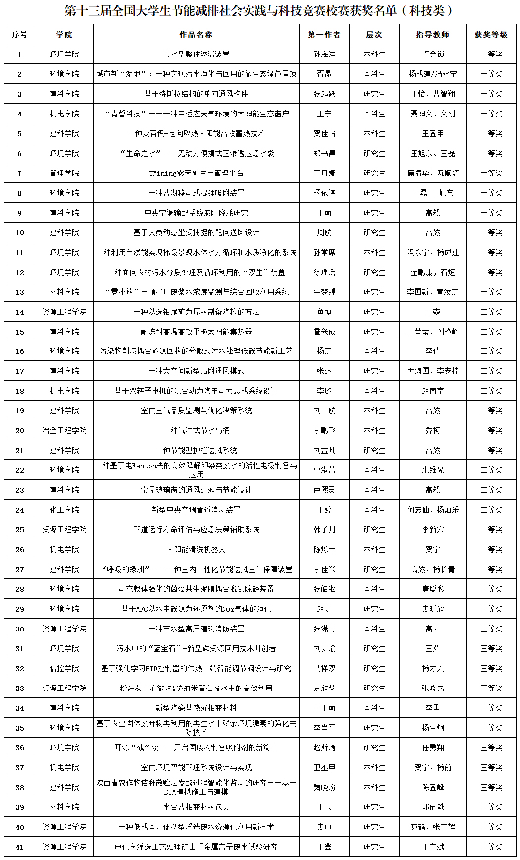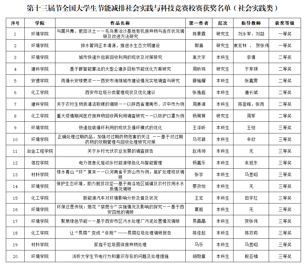 答辩历时8个多小时,评委综合现场答辩陈述情况、申报书质量等评出了此次校赛一、二、三等奖的获奖团队,详见附件。经组委会研究,决定推荐获得校赛一等奖的15项作品参加第十三届全国大学生节能减排社会实践与科技竞赛国赛。此次竞赛充分展现了我校在节能减排领域的新思路、新视野、新技术和新发展,同时展示了我校学子勇于创新、学以致用的精神,也增加了各个学之间的学术交流,激发了校内的双创热潮。最后,预祝我校在第十三届全国大学生节能减排社会实践与科技竞赛中取得优异成绩。