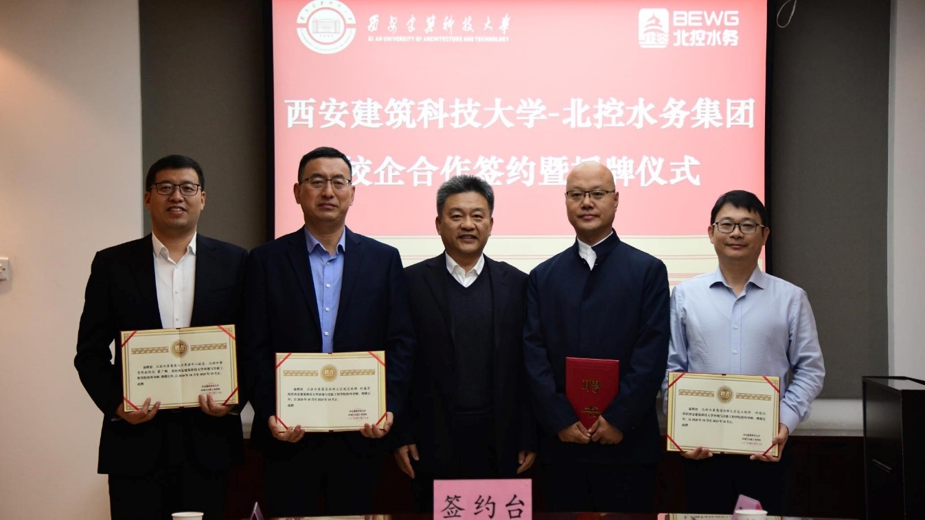 10月30日下午,北控水务集团与我校校企合作签约暨授牌仪式在雁塔校区举行。北控水务集团高级副总裁、北控水务学院院长于立国一行12人、副校长黄廷林、对外合作办公室、人事处、教务处、科技处、研究生院、学生处、创新创业教育办公室等部门的负责同志、雷竞技RAYBET班子全体成员参加仪式,仪式由雷竞技RAYBET院长任勇翔主持。