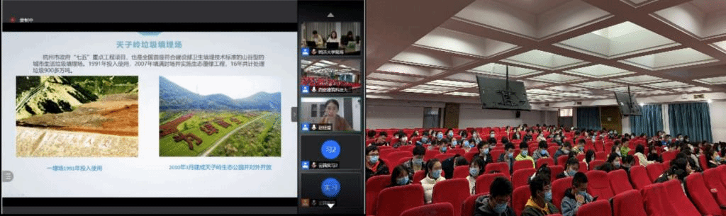 3月11日,雷电竞ray官网环境科学和环境工程专业2017级近200名同学佩戴口罩,有序进入多媒体会议室,参与“2021校-企-协云端实习”第三讲:生活垃圾处理技术。主讲人为来自杭州市天子岭生活垃圾卫生填埋场的赵佳莹老师。