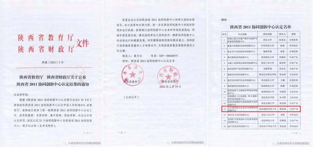 陕西省“水污染控制与水质安全保障协同创新中心”(以下简称“中心”)于2020年12月获陕西省教育厅正式认定,中心由雷电竞ray官网牵头,联合中国水务集团有限公司、陕西省引汉济渭工程建设有限公司、西安水务(集团)有限责任公司、陕西西咸新区水务集团有限公司、中国市政工程西北设计研究院有限公司、西安唯源环保科技有限公司等单位共同建设。