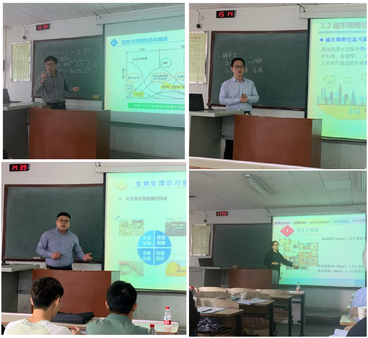 殷亚楠、李凯、李伟、杨垒、王茹、唐聪聪、王会霞7位老师参加了本次竞赛,参赛内容选自《固体废物处理与处置》《水文学》《泵与泵站》《水质工程学》《水污染控制工程》《环境工程学I-1(水污染控制工程)》和《环境监测》等课程,分别进行了20分钟现场教学展示。比赛中,参赛教师精神饱满、全情投入,与学生积极互动。评委们也从选题内容、教学形式、现代化工具的利用等多方面进行点评。