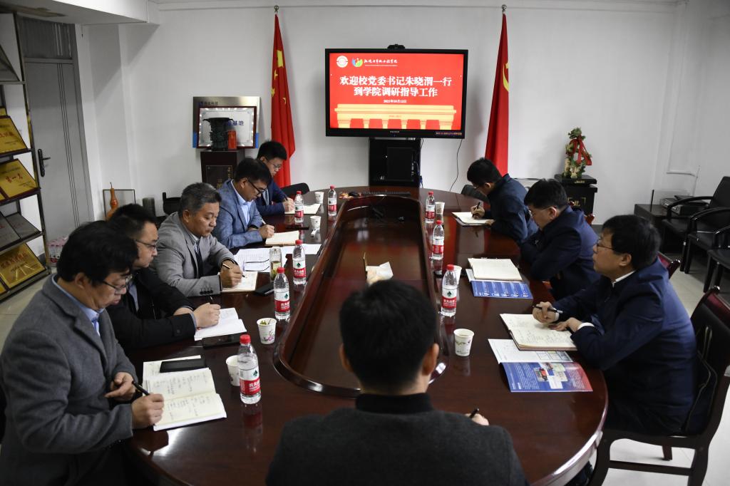 10月12日上午,校党委书记朱晓渭一行到雷竞技RAYBET调研指导工作,校党委办公室、校长办公室主任刘晓武陪同调研。雷竞技RAYBET领导班子全体成员参加调研会,会议由学院党委书记王劲松主持。