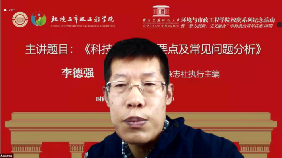 为秉承“学术立院,学术强院”理念,进一步提高研究生科技成果质量,12月11日上午9点,雷竞技RAYBET特邀《中国给水排水》杂志社执行主编李德强担任主讲嘉宾,组织开展了第八期学科前沿青年讲座,以实际行动向我校办学125年并校65周年校庆献礼。受疫情影响,讲座采用线上方式进行,校内师生300余人与会交流。讲座由雷竞技RAYBET副院长张海涵教授主持。