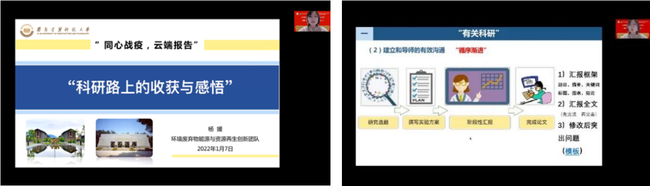 在疫情期间,支部副书记杨媛老师受邀参加雷竞技RAYBET“同心战疫·云端报告”研究生教育系列活动,为学院全体研究生以“隔空不隔爱”的线上方式分享了“科研路上的感悟与收获”为主题的线上汇报。杨老师主要就如何做好科研工作、论文写作等展开了汇报。同时建议大家在面对一件事情的时候不仅要有尽善尽美、追求卓越的态度,也要有面对失败但勇于再次挑战的豁达态度。该报告内容丰富有趣,获得一致好评。这类活动不仅保证了疫情期间研学不断线,也对我院研究生教育的高质量发展起到一定的促进作用。