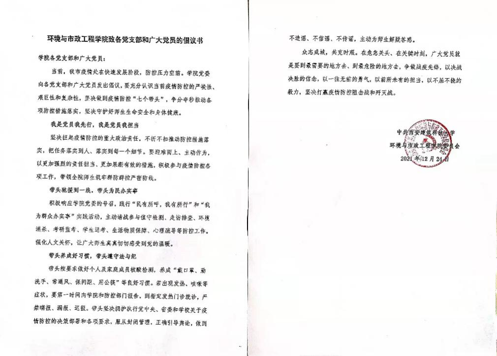 疫情就是命令,防控就是生命线。学院充分发挥基层党支部的战斗堡垒作用和党员的先锋模范作用,让党旗在防控斗争第一线高高飘扬,发布了《雷竞技RAYBET致各党支部和党员的倡议书》,从各年级各宿舍楼内召集党员干部,组成党员先锋队。负责完成所在宿舍楼所辖学生宿舍的每日卫生消杀以及通风卫生监督;佩戴党徽,组织好学院学生每轮次的核酸检测,做好现场的组织和防疫要求提醒;引导同学们稳定情绪、增强信心,全面科学正确对待疫情,不信谣、不传谣,耐心细致地做好思想引导和科普宣传,引导学生正确理解、积极配合、科学参与疫情防控,及时将收集的疫情防控信息上报学院。