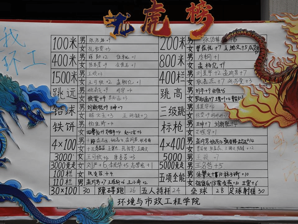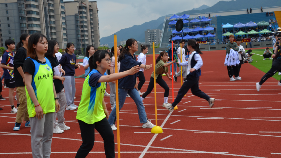 此次田径运动会,学院领导给予了极大的支持和关注,两校区春训过程中院领导、辅导员、学生干部们的身影活跃在体育场上,陪伴鼓励着阳光体育参赛同学和校运会运动员们。同学们坚持训练,克服困难,咬牙拼搏,突破自我,最终取得了喜人的成绩。观赛同学呐喊助威,喊到沙哑也依旧全力给予运动员精神力量。学生组织在经历人员筛选、带训、服务等方方面面的挑战不仅让大家获得了个人能力上的锻炼和提升,也培养了组织沟通协调等综合能力,更体现出了学生干部们在关键时刻信得过、靠得住、顶的上。这一切无不彰显环境人自上而下骨子里涌动着“爱我环工,勇攀高峰”的强大精神力量,环境青年团结友爱、互帮互助、奋力向前,进一步增强了集体荣誉感和凝聚力。未来,环境学子将继续延续顽强拼搏、永不言弃的良好风范,争做有梦想、有担当的新时代青年。