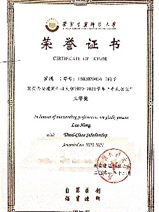 四年平均学分绩点3.19,课外素质学分平均分21.73,班级学分绩点最高4.28,均位列年级第一