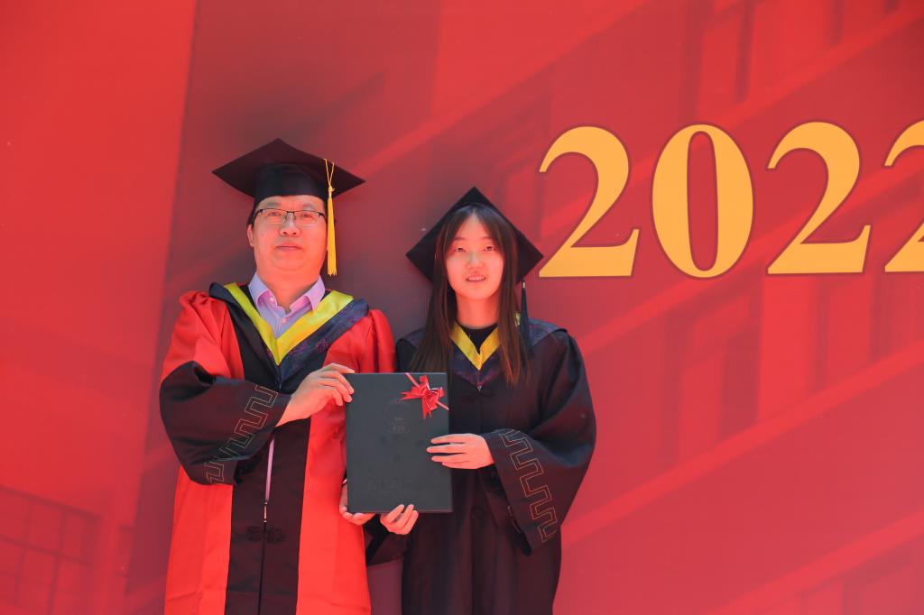 毕业典礼在校歌《高举着民族复兴的伟大旗帜》中圆满结束。随后,学位委员会委员卢金锁教授、刘立忠副教授、张海涵教授上台为2022届环境毕业学子授位并拨穗。