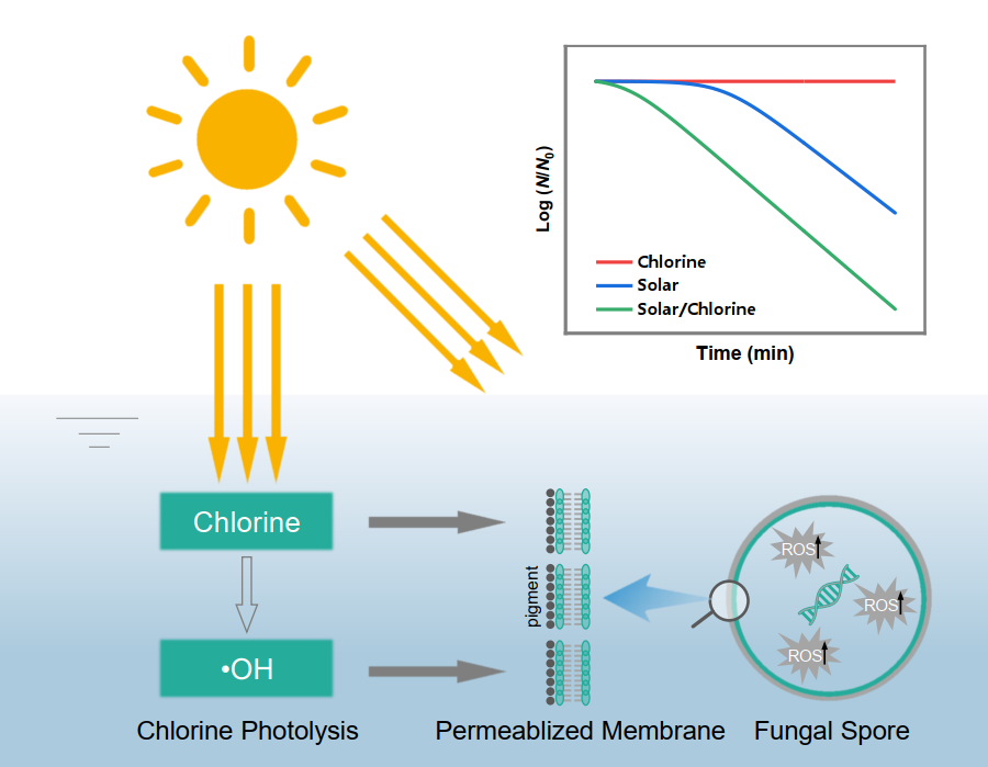 文章3:Enhanced solar inactivation of fungal spores by addition of low-dose chlorine: Efficiency and mechanism (太阳光/氯联合灭活水中真菌孢子的效能和机理)