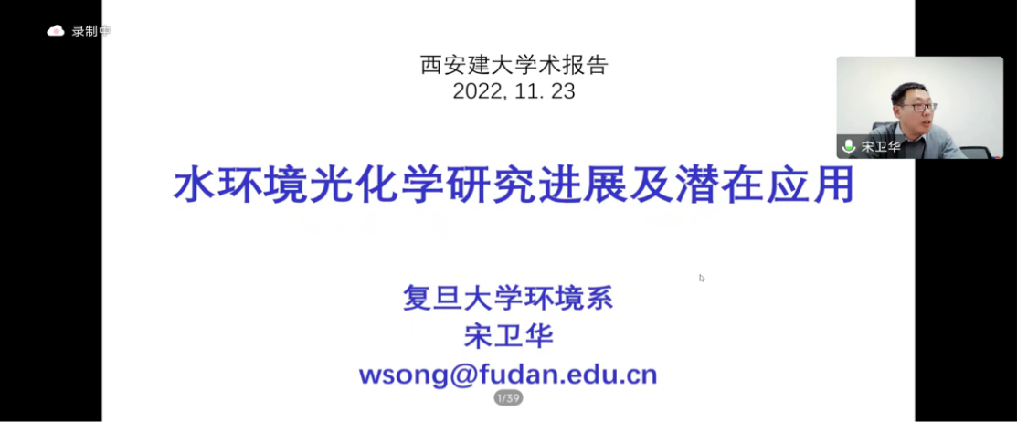 2022年11月23日下午,雷竞技RAYBET第14期学科前沿青年讲座顺利举办。本期活动特邀复旦大学宋卫华教授担任主讲嘉宾,主题围绕“水环境光化学”展开,我院师生300余人参会交流。讲座由给排水科学与工程教研室的马晓妍副教授主持。会议伊始,马晓妍老师对宋卫华教授的到来表示欢迎与感谢,并简要介绍了宋老师的研究方向、学术成果等相关情况。