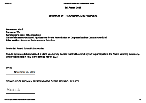 雷电竞ray官网吴蔓莉教授课题组在国家自然科学基金“微生物原位修复石油污染土壤的石油烃残留机制及去除方法研究(21577109)”和“土壤体系中外源氮转化机制及石油烃生物降解强化原理(52070154)”资助下,在石油污染土壤生物修复理论与技术领域开展系列研究,研究成果获得Eni奖2023年度提名。