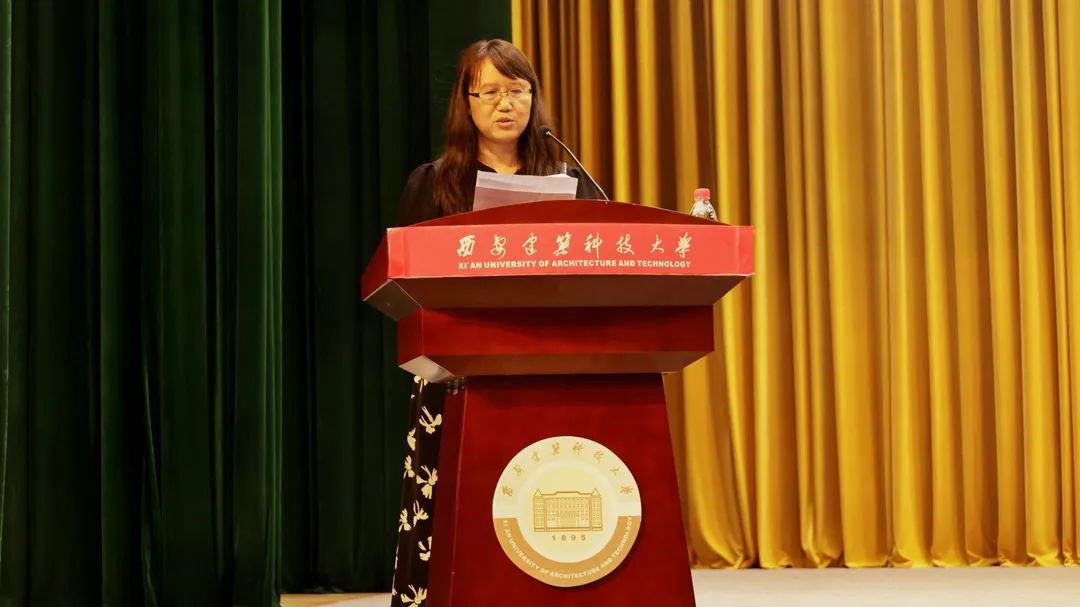 典礼第四项,新生家长代表中国市政工程西南设计研究院任春梅女士发言。她代表新生家长们鼓励同学们敢于探索,勇于创新,在校期间,结合学科专业知识,积极参与双创竞赛,为学院的荣誉墙添砖加瓦,用自身践行自强、笃实、求源、创新的校训,用行动实现理想与未来,奋勇前行,努力成为建大英才!