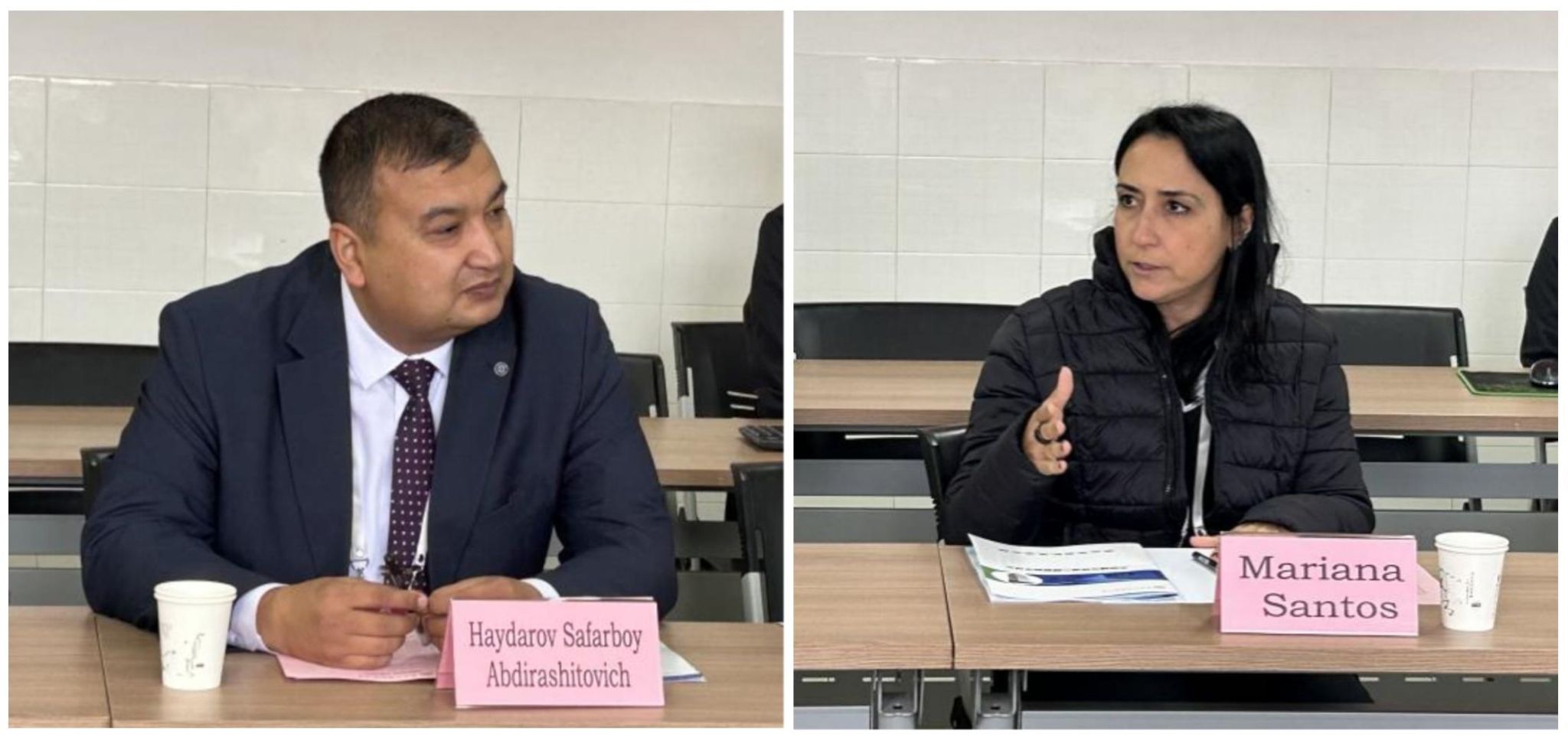 Mariana Santos副院长、Haydarov Safarboy Abdirashitovich系主任对学院的盛情接待表示感谢,两位外宾分别介绍了巴西金边大学和撒马尔罕国立大学的概况。他们表示,作为当地著名的高等学府,愿积极拓展与中国高校的交流合作,促进两校师生的往来交流及科研合作。
