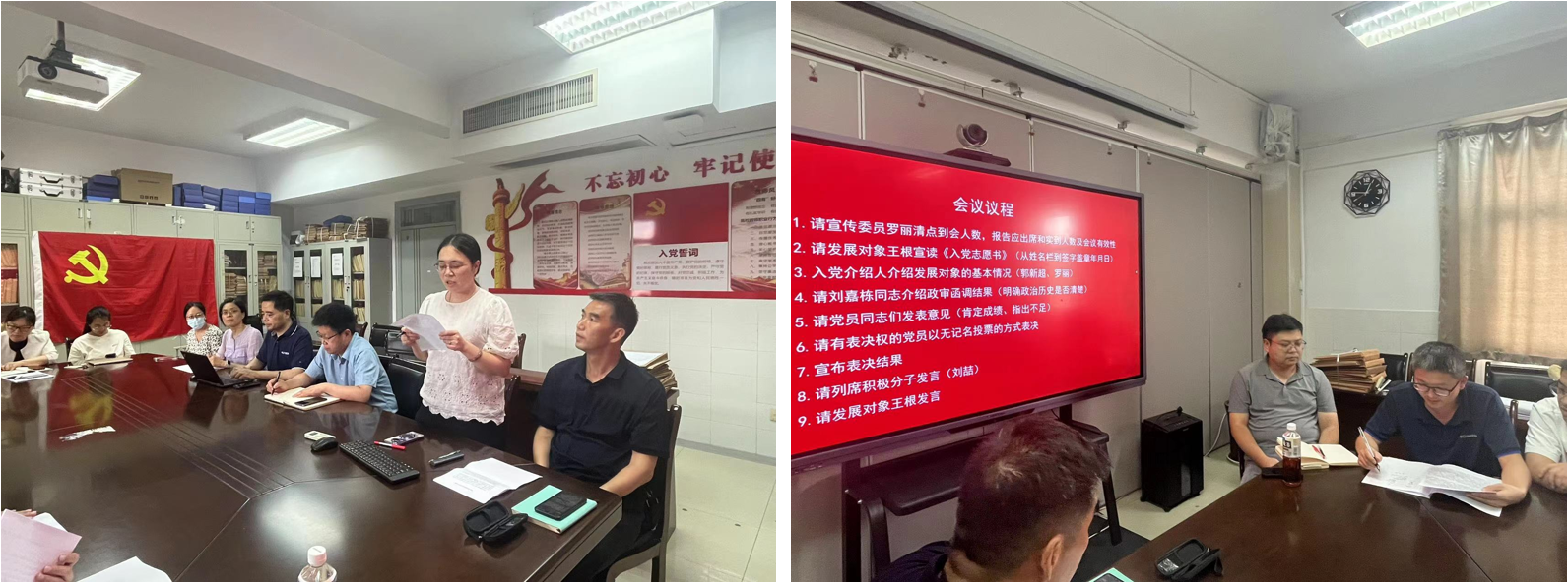2024年7月1日,中国共产党迎来成立103周年纪念日。在这个特殊的日子里,为了进一步壮大党员队伍,推进基层党组织建设,不断增强党组织的凝聚力、战斗力和创造力,雷竞技RAYBET环境工程教研室党支部召开了发展新党员大会,讨论了接纳发展对象王根同志为中共预备党员有关事宜。