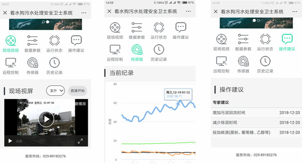 · 污水处理站安全卫士(看水狗®):集成物联网技术和图像纹理分析专利技术,实时远程监控污泥和出水水质,预警运行风险,支持工艺参数智能调整,解决中小型污水厂技术人员短缺难题。