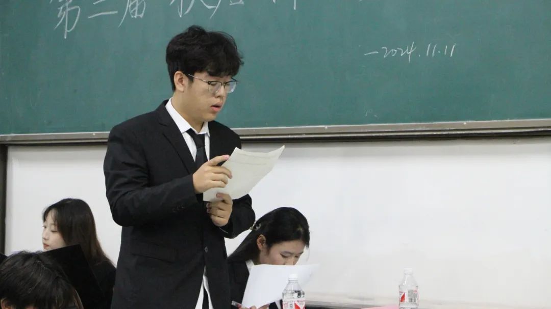 薛章哲老师进行总结发言,他对本次决赛双方的精彩表现赞叹有加,对比赛评委的专业解读充分肯定。他指出,辩论赛能够培养和提升同学们的辩证思考能力,极大地锻炼同学们的文字归纳和语言表达能力,激发同学们的思维活力,同学们要在思辩中成长,在挑战中收获。此外,他对比赛辩题进行解读,“搭子”文化已经成为年轻人社交生活中不可忽视的一部分,我们应尊重并理解这种新的社交现象,它在丰富社交形式的同时,也促使我们重新审视社交的内涵与价值,引发更多思考,引导我们建立健康、良好的社交关系,愿你我轻装上路,不管行程长短,都能珍惜当下、自洽前行。