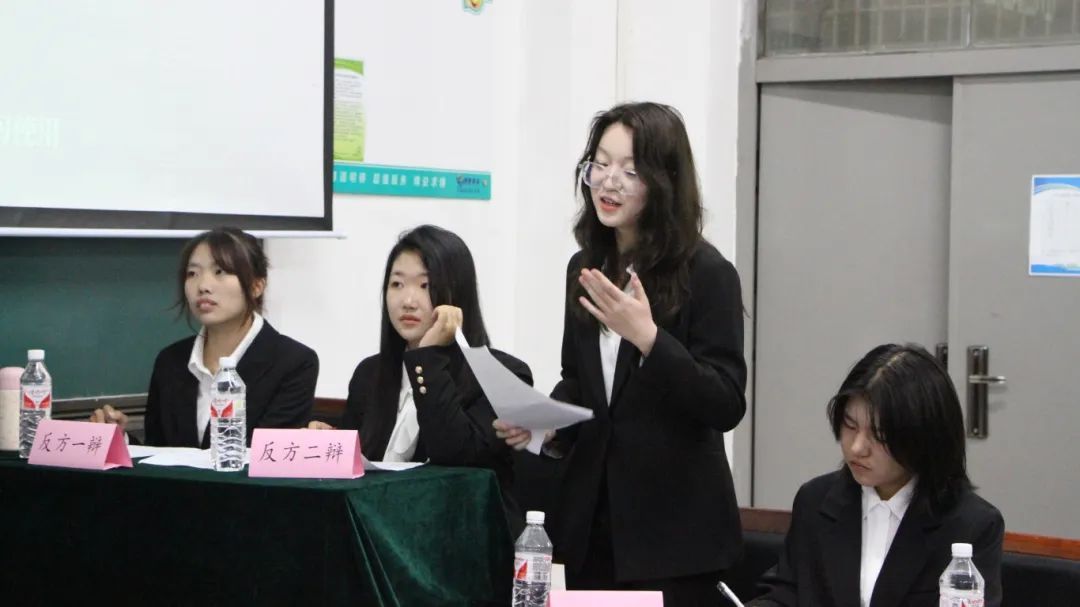 正方一辩潘园盟同学、反方一辩冯群林同学进行开篇立论,他们所持观点清晰,立场明确。攻辩阶段,双方二辩问乐天、黄晓宇同学和三辩熊英豪、柳叶青同学紧抓对方立论中的漏洞积极展开质询,展现出优秀的临场发挥能力与语言组织能力。在自由辩论环节,双方辩手沉着冷静应对对方的提问并进行反驳。双方四辩崔冉、穆卓越同学总结陈词,他们总结归纳了本方的观点,回应对方质询,语言简明扼要,陈词掷地有声。