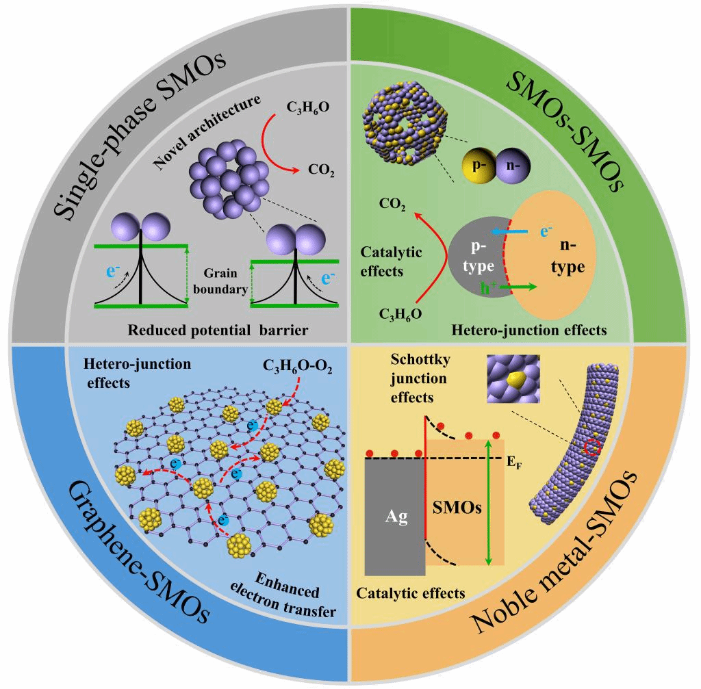 化学电阻型半导体气体传感器具有选择性高、灵敏度高等优点,在环境监测、工业生产、航空航天、国防安全、宇宙探测等领域具有重要的应用价值,当今物联网的飞速发展更是极大地促进了传感技术在各领域的应用。传感器作为物联网的神经末梢,是物联网获取信息窗口、执行指令的依据。气敏半导体材料是化学电阻型气体传感器的核心,设计合成高性能的气敏材料对发展先进气体传感器至关重要。设计具有丰富孔结构、高比表面积以及良好载流子输运骨架的晶态半导体金属氧化物有助于提升气敏响应性能,是目前化学电阻型半导体气体传感器的一个重要研究方向。