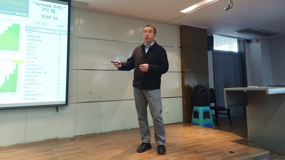 首先,景传勇教授对自己在建大的难忘岁月做出了深情的回顾。他说:自己在建大学习到了许多终生受用的知识,这此回校交流,是报以学生的心态来向母校汇报工作的。随后,景传勇教授从典型地区的砷污染现状、砷的环境界面过程机理、基于TiO2的砷消减、砷污染及防治研究探索四个方面进行了讲解。他讲解到我国地表水受砷污染的现象严重,改善我国饮用水水质任重而道远,而TiO2的砷消减方法与机理的提出,为解决地表水砷污染问题提供了有力的理论支撑。他告诫大家,在科研过程中,应当从微观反应机制深入了解反应机理,从而解释现象,加以控制反应过程。最后,他介绍了自己的团队,其中许多都是建大的优秀校友,并向建大学子抛出了橄榄枝 ,希望能够涌现更多的科研人才与之并肩战斗。会议结束,进入问题讨论环节,现场气氛活跃,老师同学们提出了许多有深度有价值的问题。随后,景传勇教授耐心细致地对问题做出了解答,是真正体现报告交流之本。