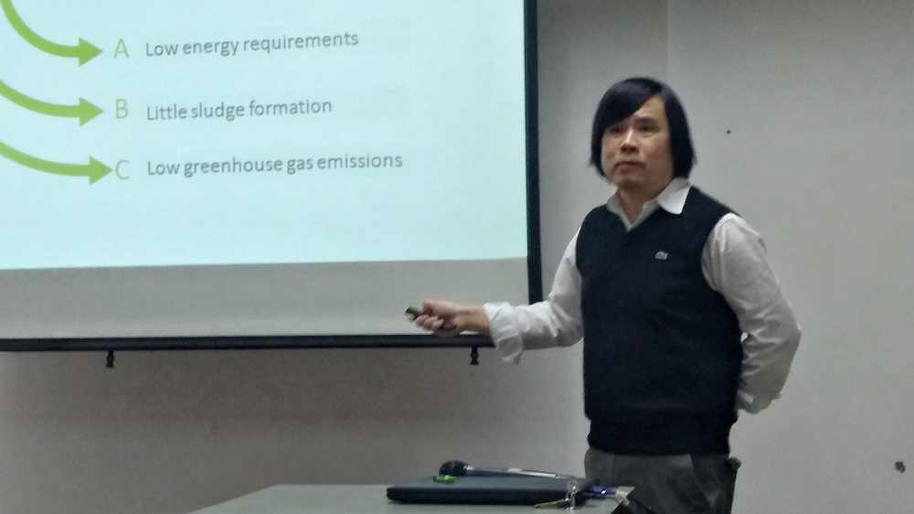随后,Huu Hao Ngo教授开始做主题报告。教授首先简单介绍了养猪废水中的污染物水平及其对环境和人类健康的危害;接着讲解了养猪废水中微藻种类的增长及其影响因素,进而提出利用微藻和浮萍细胞去除有毒有害物质污染物的方法,并指出从养猪废水中收获的微藻和浮萍生物是生产生物燃料和化学药品的有效材料,这种材料可以用于替代石油化学产品。