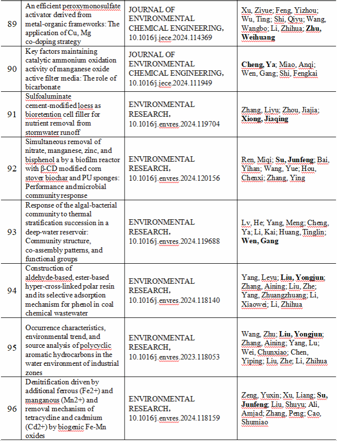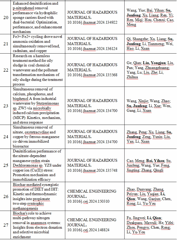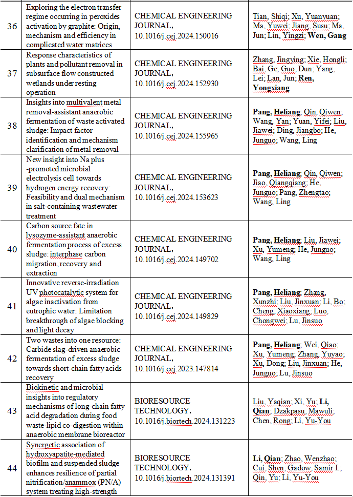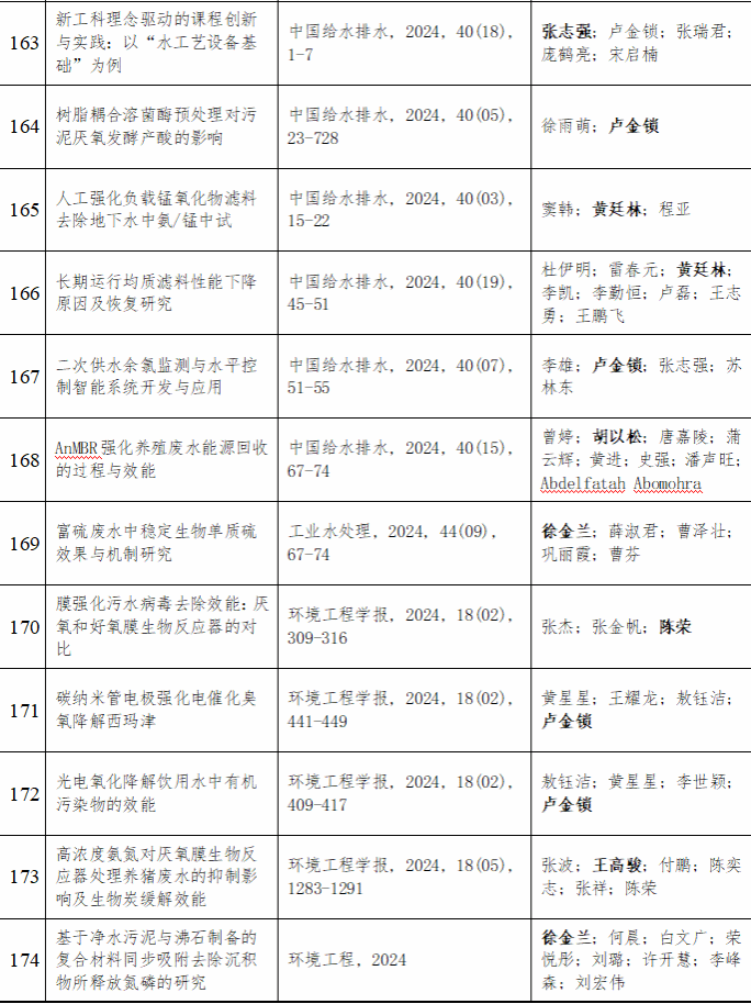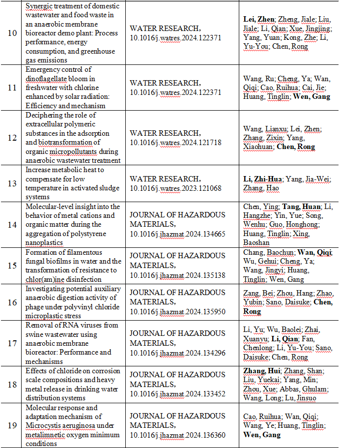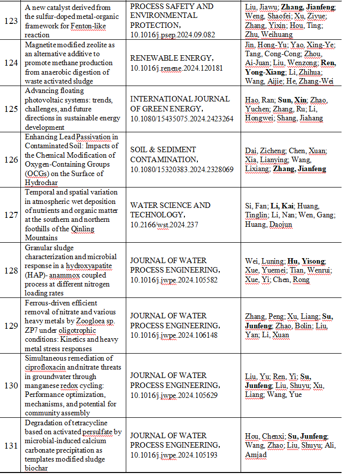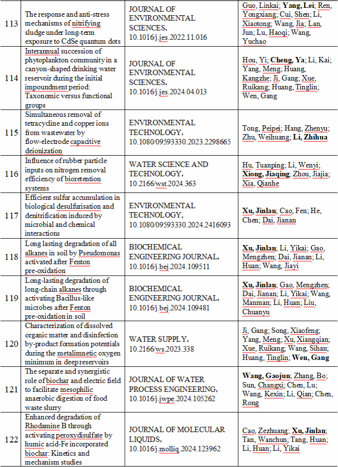 2024 年给排水教研室共发表论文 197 篇,其中 SCI 论文 148篇, SCI一区论文 93 篇,中文论文 49 篇。论文列表见表 8 所示。