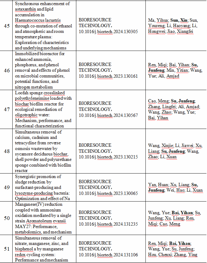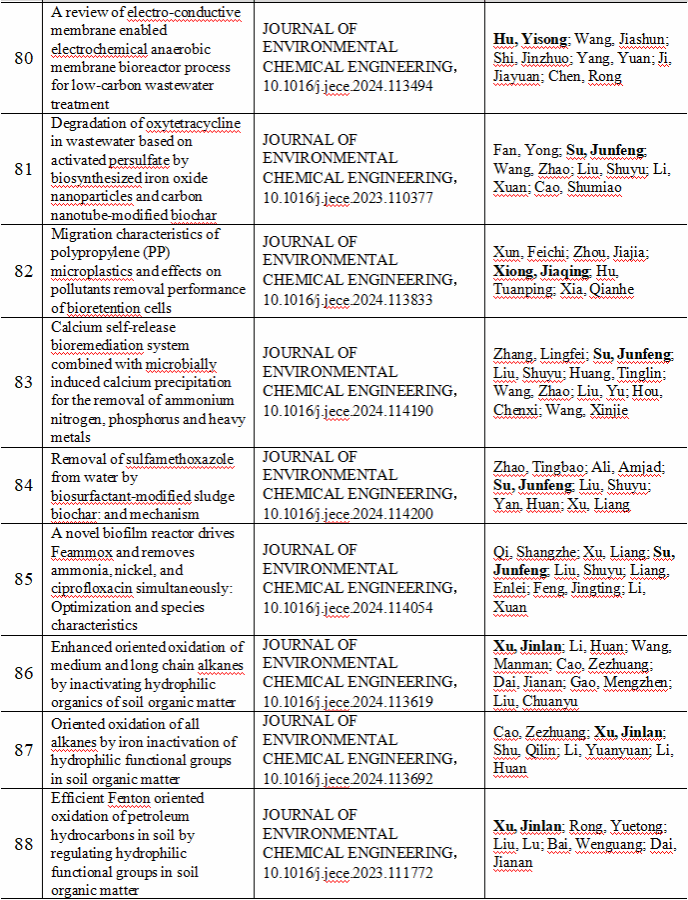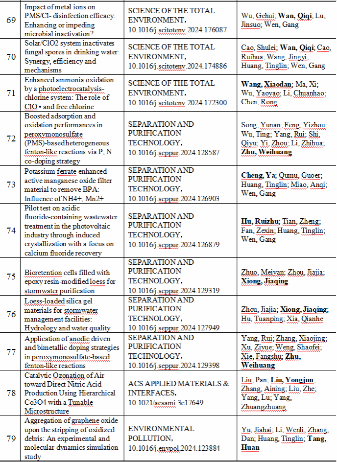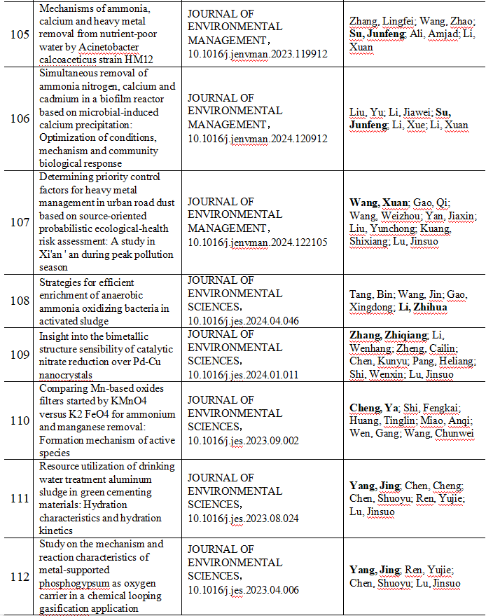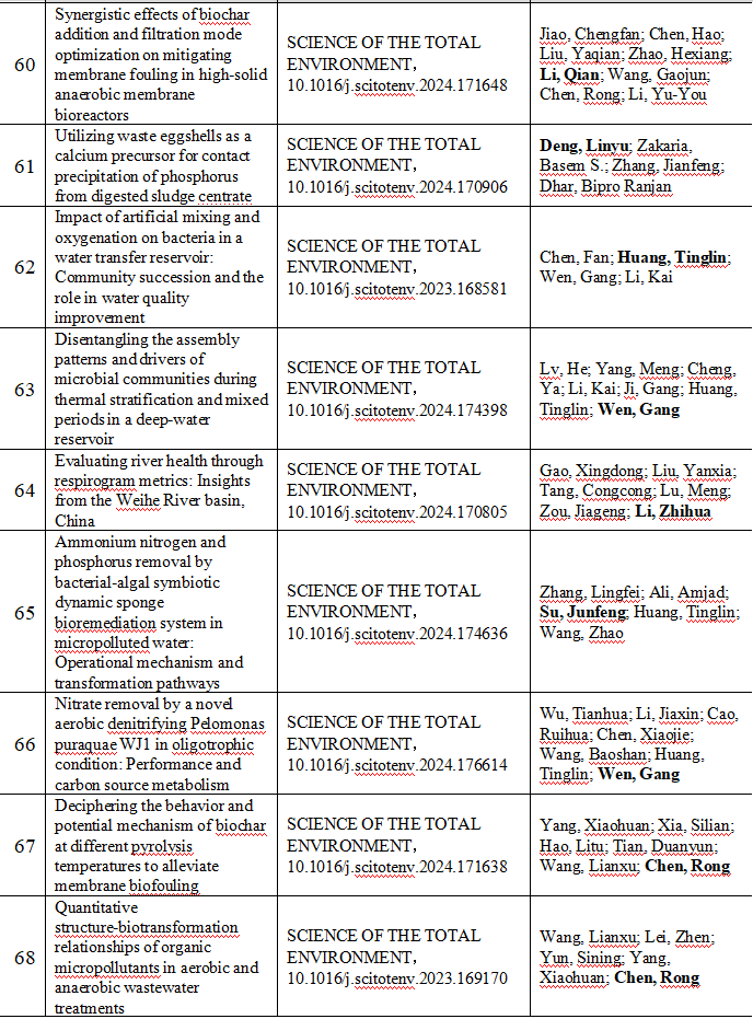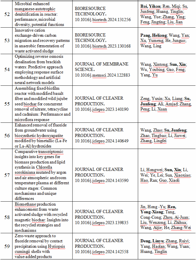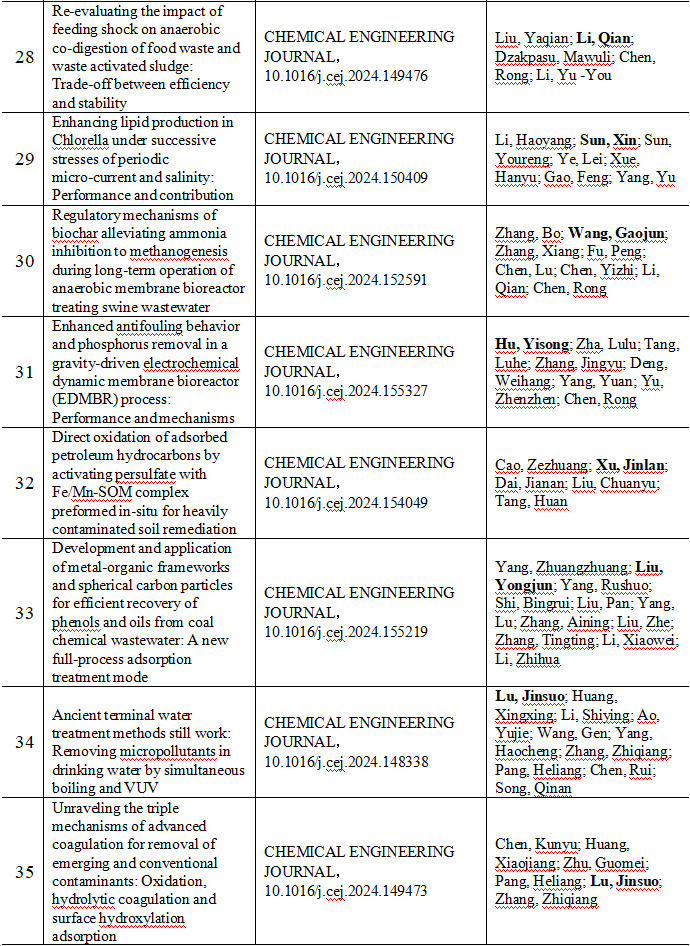 2024 年给排水教研室共发表论文 197 篇,其中 SCI 论文 148篇, SCI一区论文 93 篇,中文论文 49 篇。论文列表见表 8 所示。