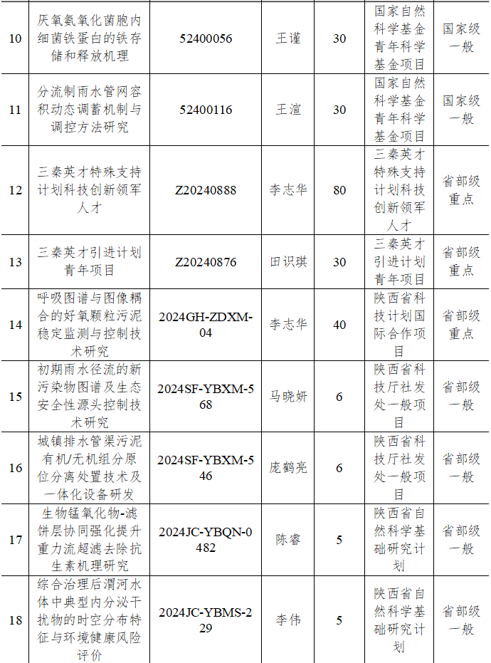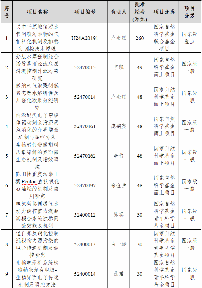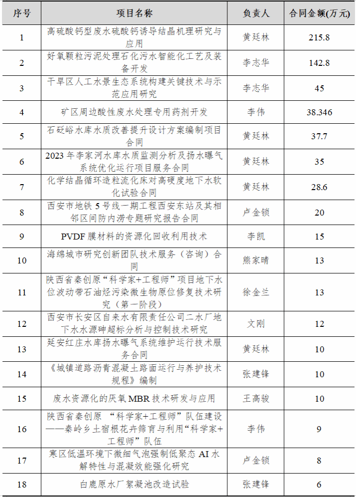 表5 2024年给排水教研室承担科研项目列表