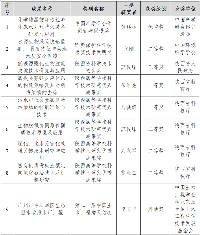 (1)平台支撑-校企协同-项目驱动的创新人才培养模式探索与实践,陕西省研究生教育教学成果奖一等奖(黄廷林);