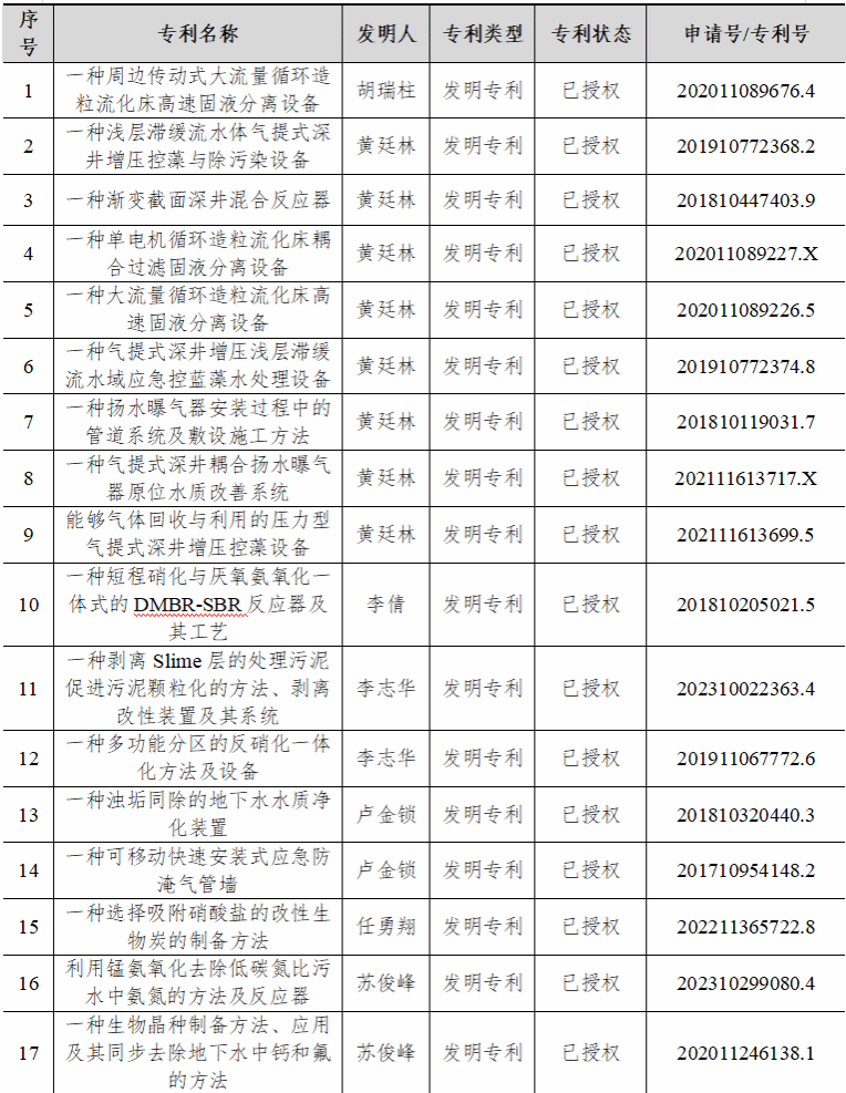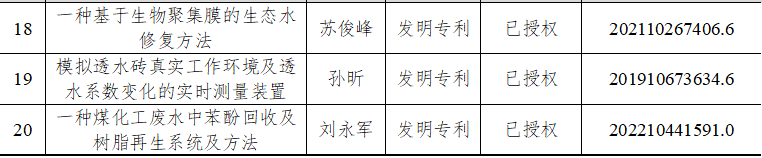 2024年给排水教研室共申请专利20项,授权20项。主要授权专利见表9所示。