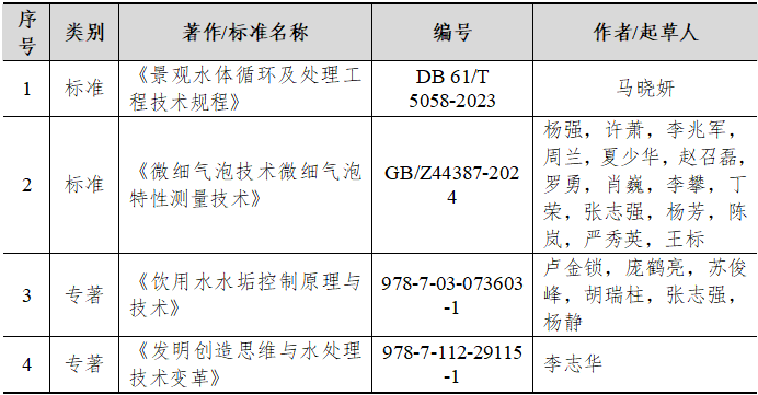 2024年给排水教研室发布实施标准2项,发表著作2项,详细见表10。