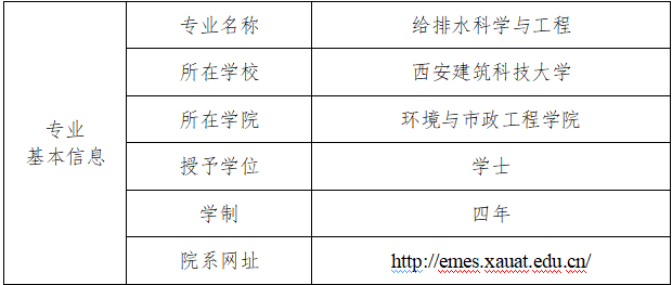 表1 雷电竞ray官网给排水科学与工程专业信息