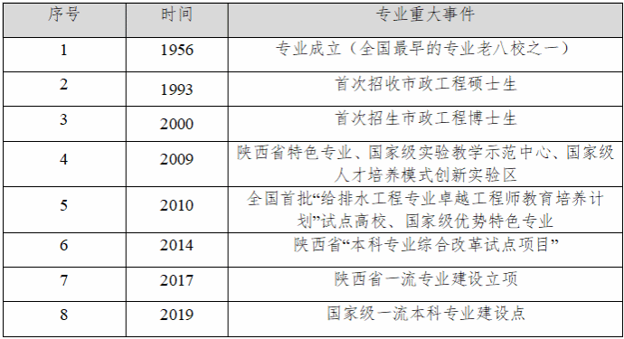 表2 雷电竞ray官网给排水科学与工程专业重大事件