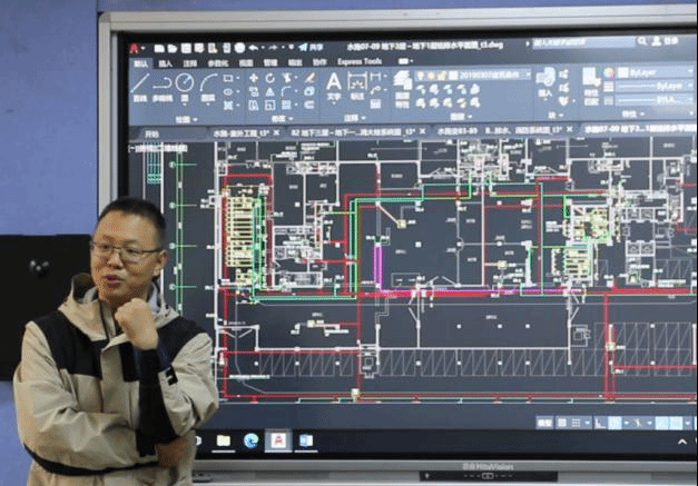 随后,林小辉高工结合工程设计实训大厦的设计,就工程实践经验以及实习建筑图纸,对本次毕业实习建筑予以直观的解释和说明,并进一步明确了在工程设计过程中工程师所担任的职责。对于实习建筑的给排水,他分别从建筑概况、冷热水给水系统、消防系统、排水系统、雨水系统以及室外小区给排水等方面进行介绍,并在讲座过程中多次指出,国家标准的要求并不等于在工程实践设计中的要求,例如生活给水系统中带有水箱的给水方式,国家有规范要求,但工程中并不常用。