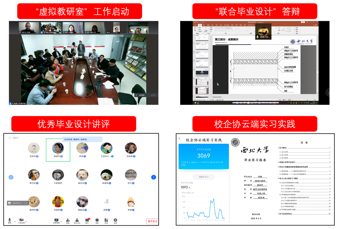 联合毕业设计是“虚拟教研室”工作的一项重要内容,在此次联合毕业设计过程中,我院张璐鑫、史昕欣两位老师担任西北大学本科生毕业设计的联合导师,两校老师对学生毕业设计中遇到的问题进行共同答疑。更重要的是,我院还与西北大学共享了往届“城市污水处理厂设计”和“垃圾填埋厂设计”两个方向的优秀毕业设计,并对优秀毕业设计的内容进行了讲解。两校还一起借助同济大学主办的“校企协云端实习实践平台”丰富了毕业实习内容,使学生将平时学到的水/气/固污染物处理原理与全国优秀企业的污染物处理工艺结合起来,学以致用。