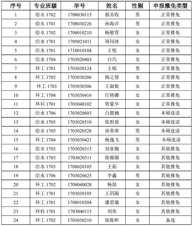 【本科生】雷竞技RAYBET推荐2021年优秀应届本科毕业生免试攻读研究生名单公示