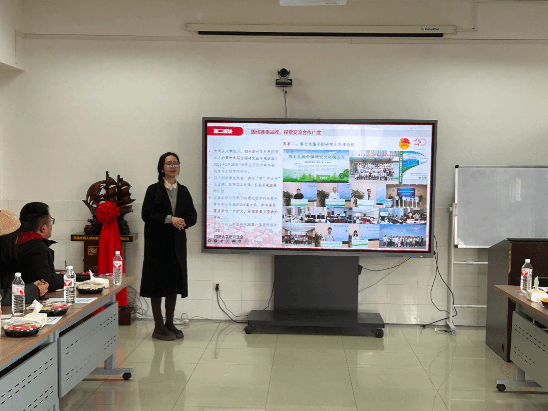 随后,同济大学环境科学与工程学院研究生会徐子笑同学作学生干部工作经验分享,她从研会建设、学术交流、本研交流、校研联动、宣传工作等方面进行分享,通过实际案例分析、个人亲身经历讲述对学生工作中可能出现的任务分配不均、成员积极性不高、与其他部门协作不畅等问题进行了分享。